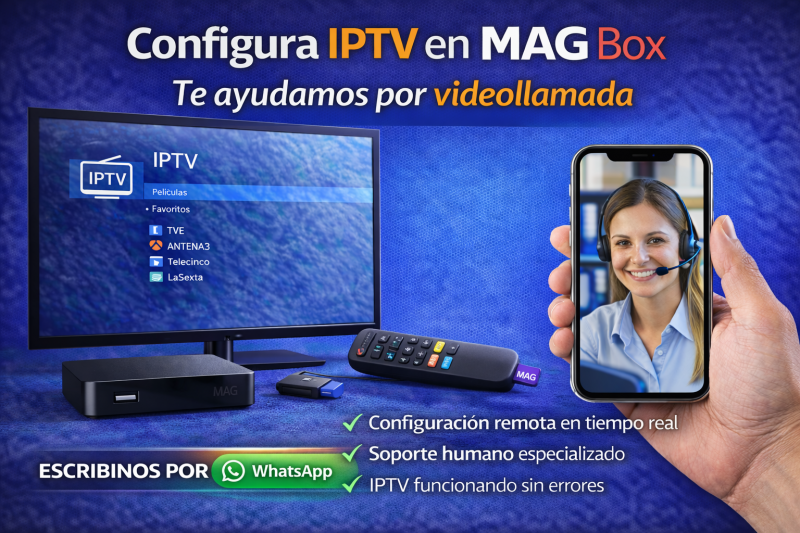Los MAG Box son uno de los receptores IPTV más utilizados a nivel mundial por su estabilidad y compatibilidad con servicios profesionales de televisión por Internet. Sin embargo, configurar IPTV en MAG Box puede resultar confuso para muchos usuarios, especialmente cuando se trata de ingresar correctamente el portal, la MAC address o resolver errores de conexión. Por ese motivo, en ConfiguraIPTV ofrecemos un servicio de configuración de IPTV en MAG Box mediante videollamada, donde un equipo de personas reales te acompaña hasta dejar todo funcionando correctamente.