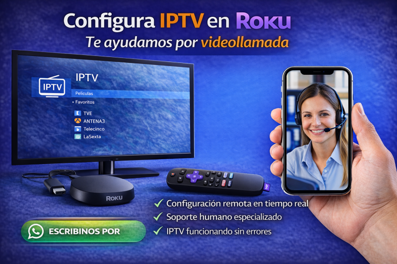 Los dispositivos Roku son muy populares por su simplicidad y facilidad de uso para ver contenido en streaming. Sin embargo, configurar IPTV en Roku suele ser uno de los casos más confusos para los usuarios, ya que el sistema tiene limitaciones propias y no permite instalar aplicaciones IPTV de la misma forma que otros dispositivos. Por ese motivo, en ConfiguraIPTV ofrecemos un servicio de configuración de IPTV en Roku mediante videollamada, donde un equipo de personas reales te acompaña y te guía hasta dejar el servicio funcionando correctamente.